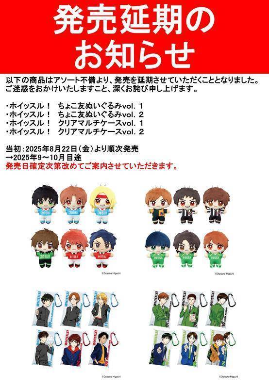 「ホイッスル!」ちょこ友ぬいぐるみ、クリアマルチケースに関するお知らせ