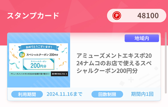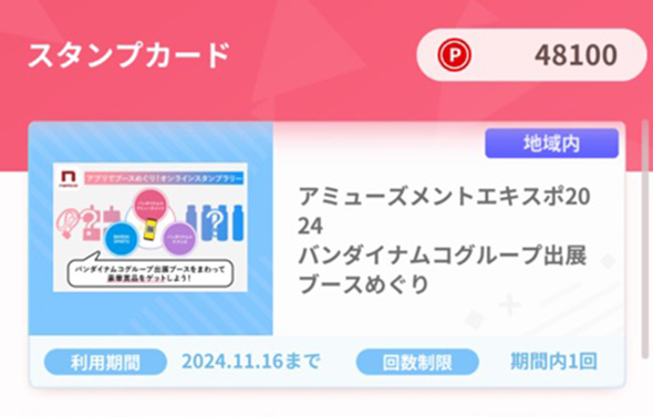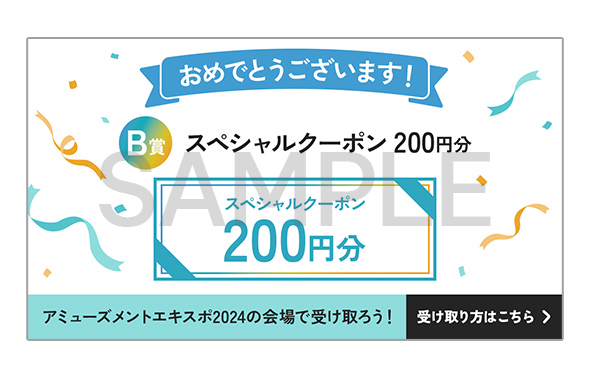 - ※スペシャルクーポンの受け取りには、アミューズメントエキスポ2024への来場、およびナムコポイントアプリのダウンロードが必要です。入場チケット代を含む来場にかかる費用やアプリダウンロードにかかる通信費等については応募者様の負担となります。ご了承ください。
