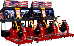 ハンドルの切れ角に連動してマシンがバンクする、可動ライド部!