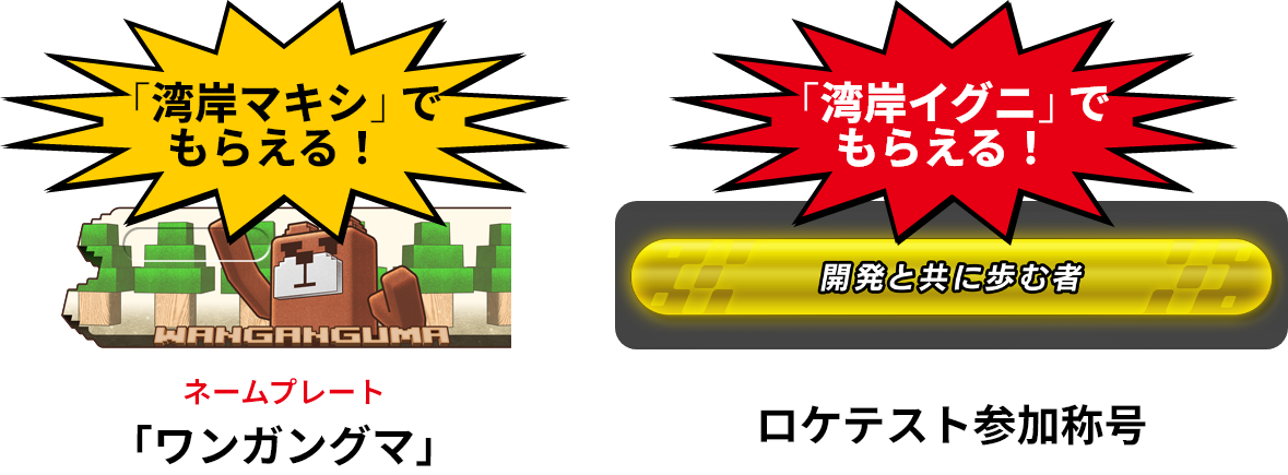 ※ネームプレート「ワンガングマ」の配布は、ロケテストの全日程終了後を予定しております。