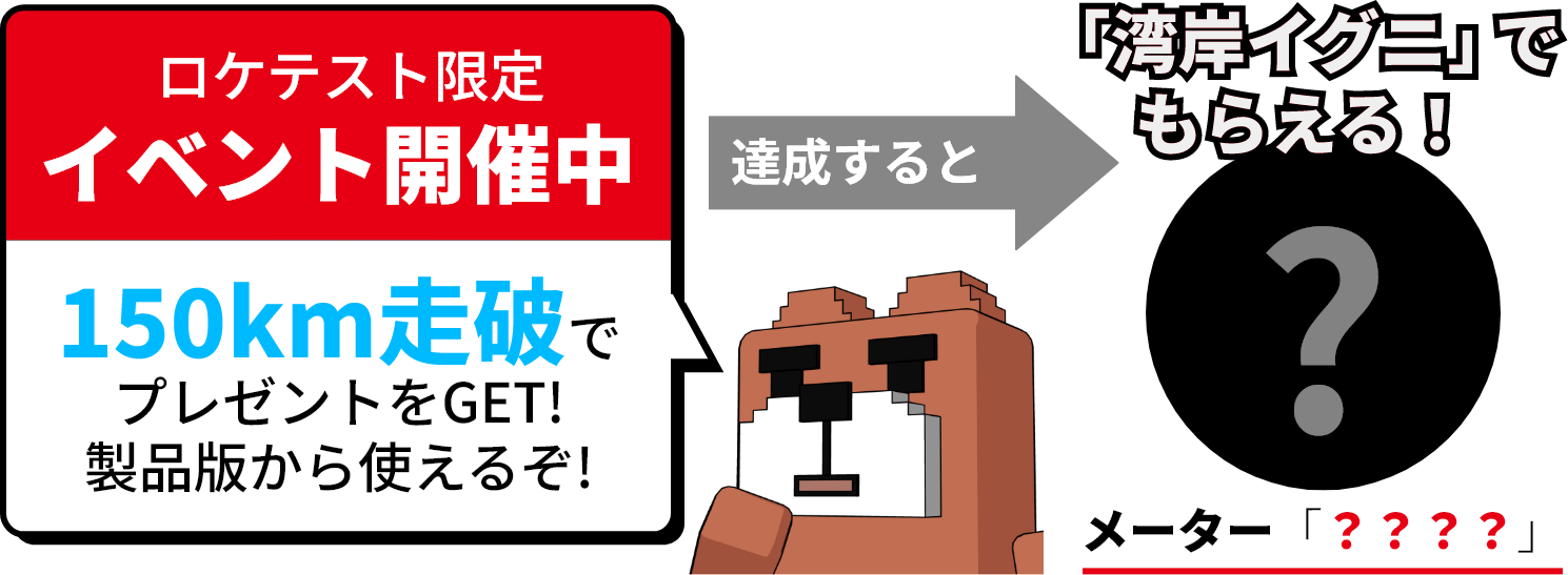 ロケテスト期間中、走行距離「150km」に達した全てのプレイヤーに、「湾岸イグニ」で使用できる特別なメーターをプレゼント!