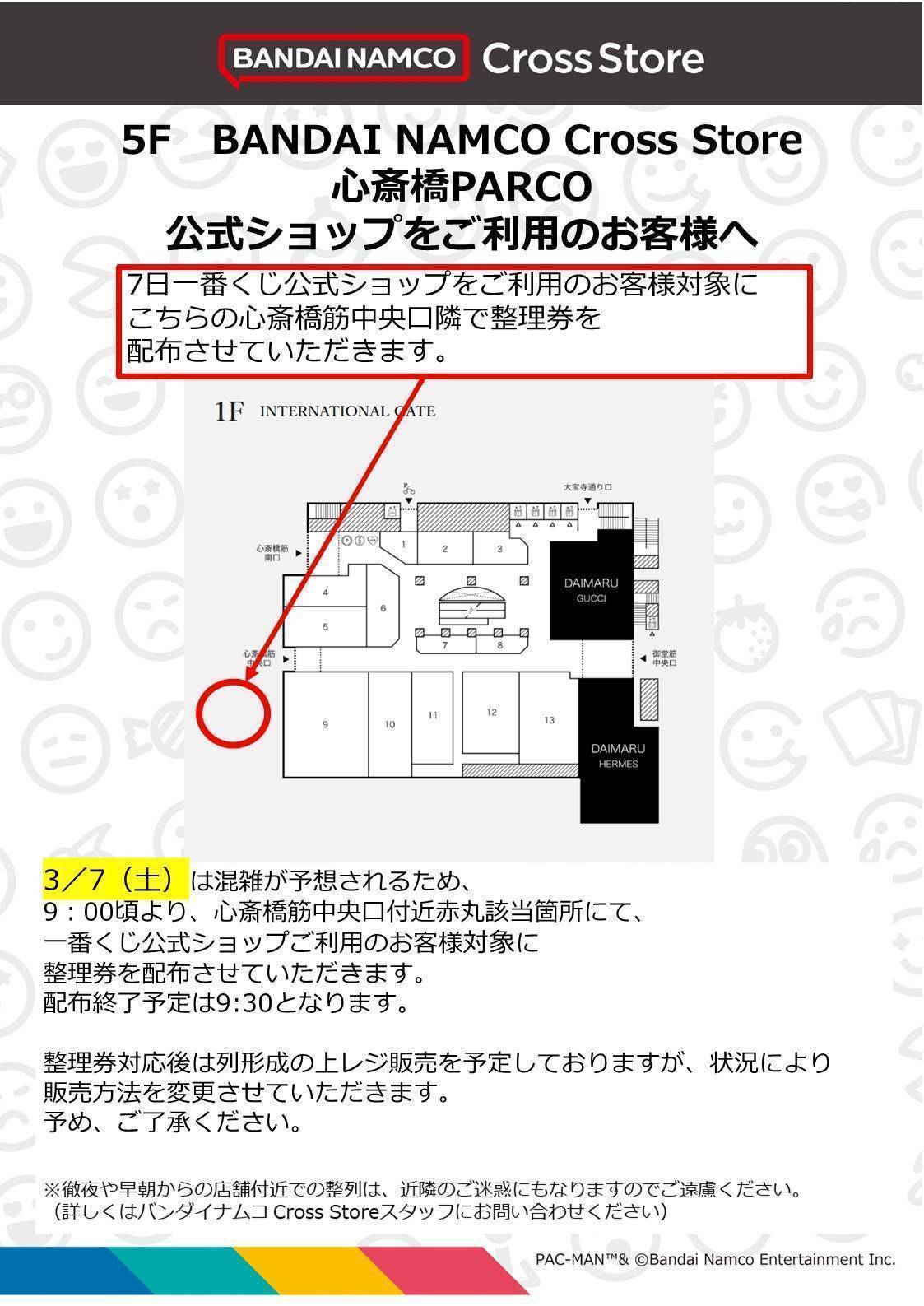 3月7日(土)BANDAI NAMCO Cross Store 心斎橋PARCO店整理券対応について