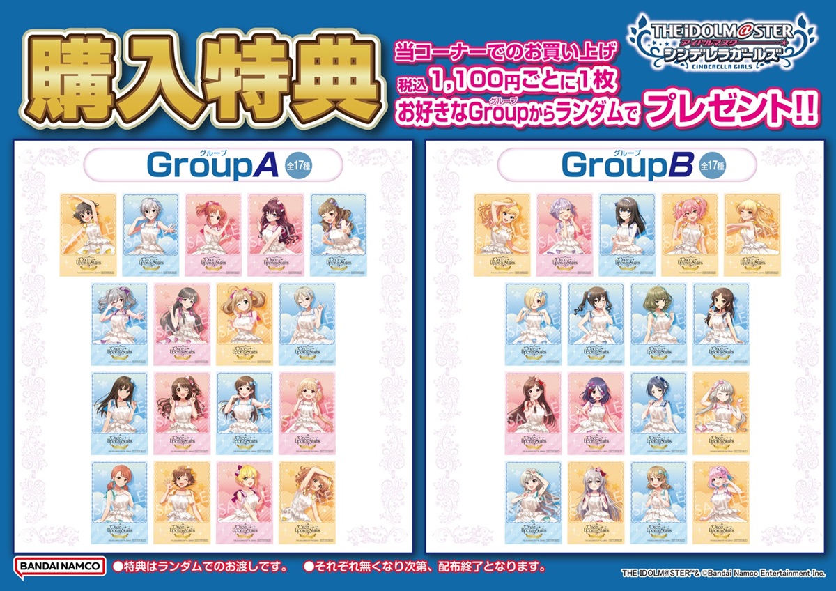 税込1,100円ごとにランダムで1枚、ブロマイド(GroupA:17種 あるいは GroupB:17種)をプレゼントいたします!