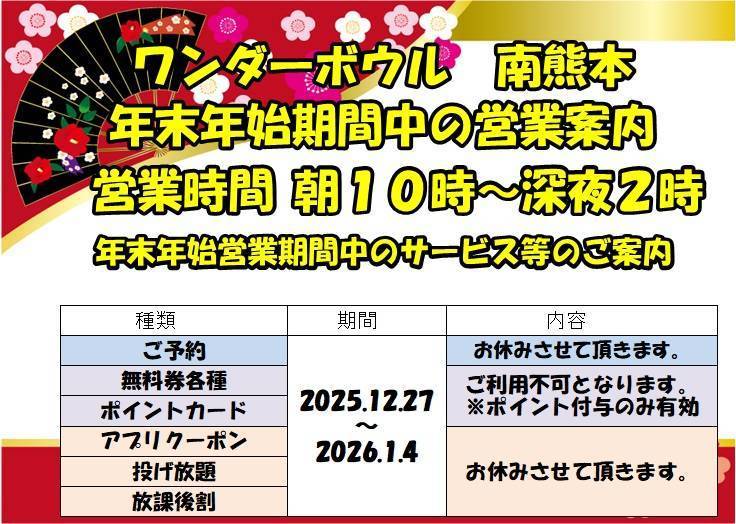 年末年始期間のサービス案内です。