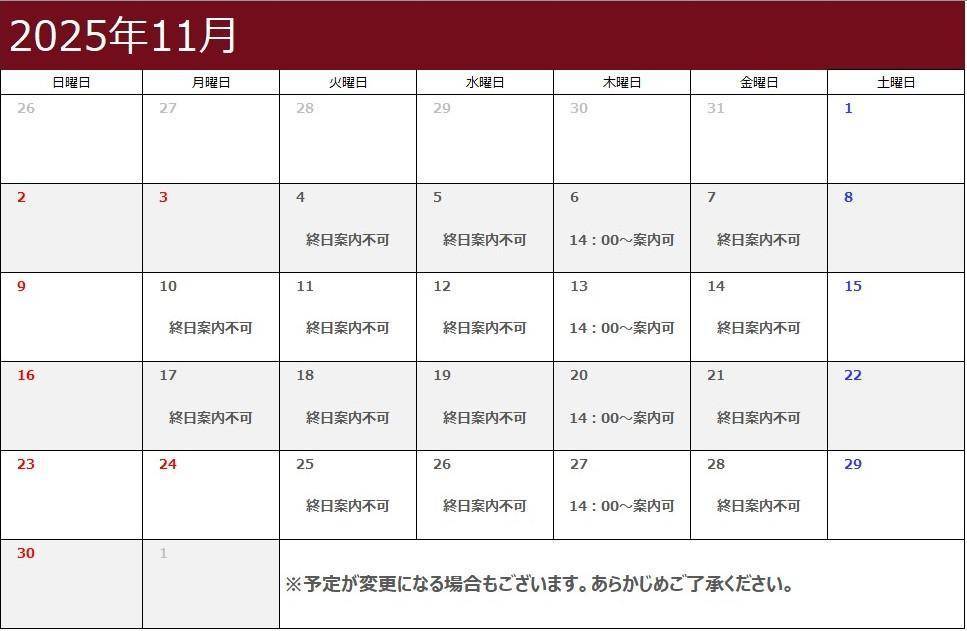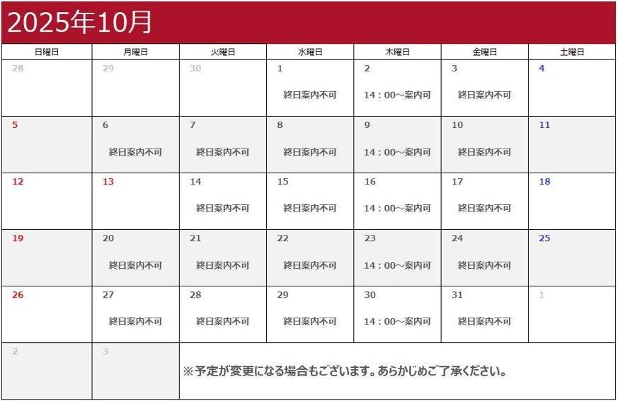 予定が変更になる場合もございますので、ご利用前に電話にてお問い合わせください。