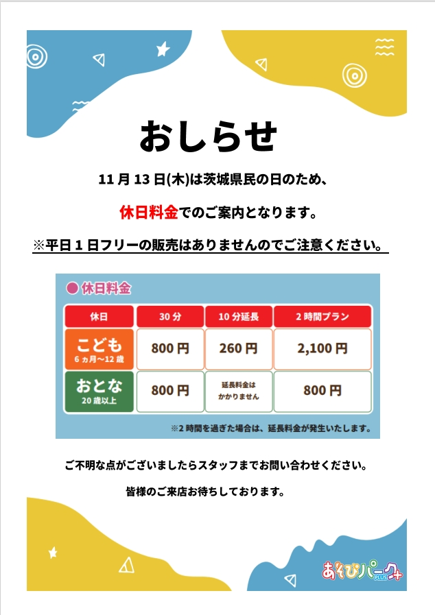 ※あそびパーク 9:00~18:30 (最終受付18:00)