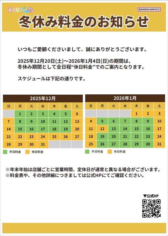 ※あそびパーク 9:00~18:30 (最終受付18:00)