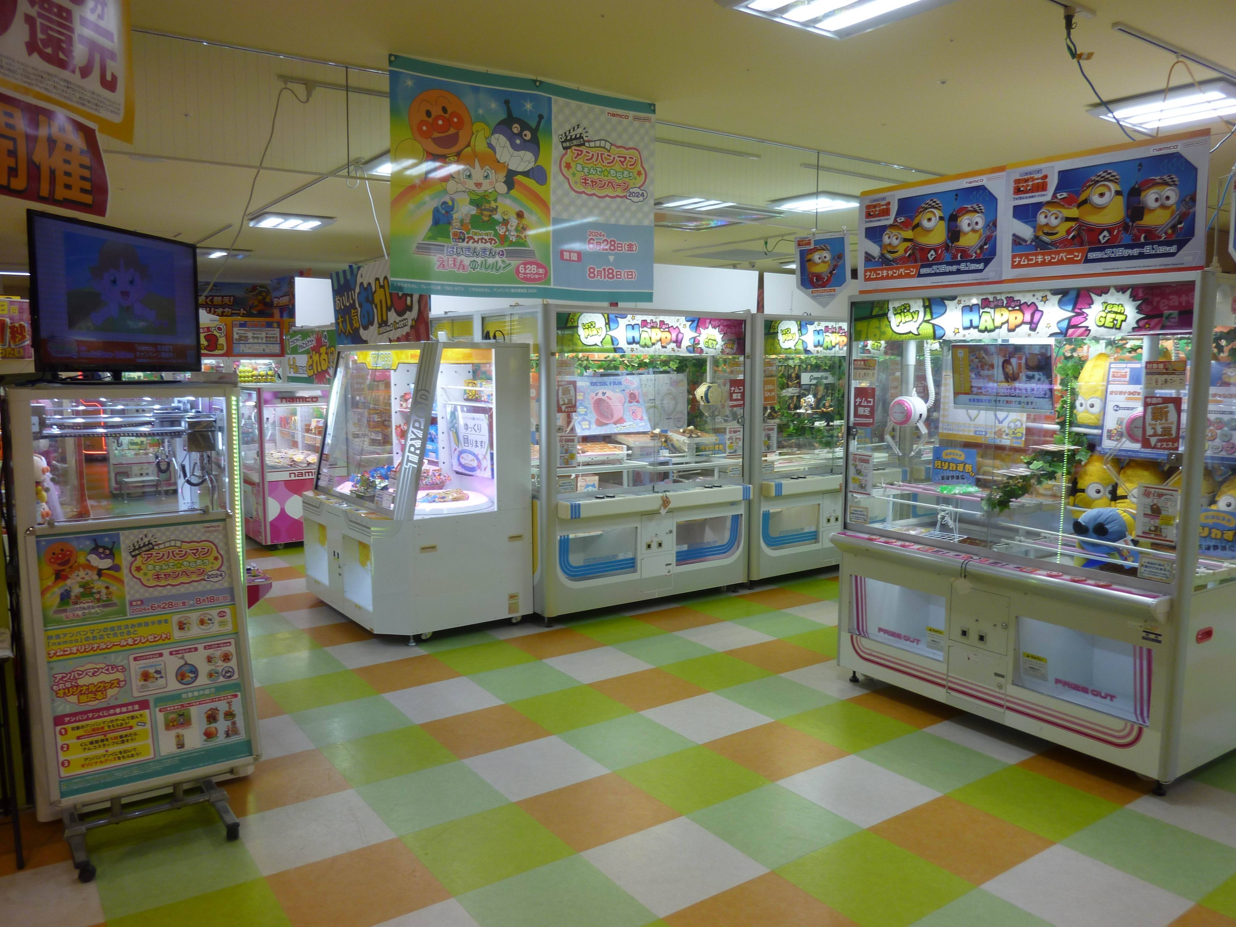 クレーンゲームにはお菓子やぬいぐるみがいっぱい!1枚から遊べるメダルゲームコーナーも!