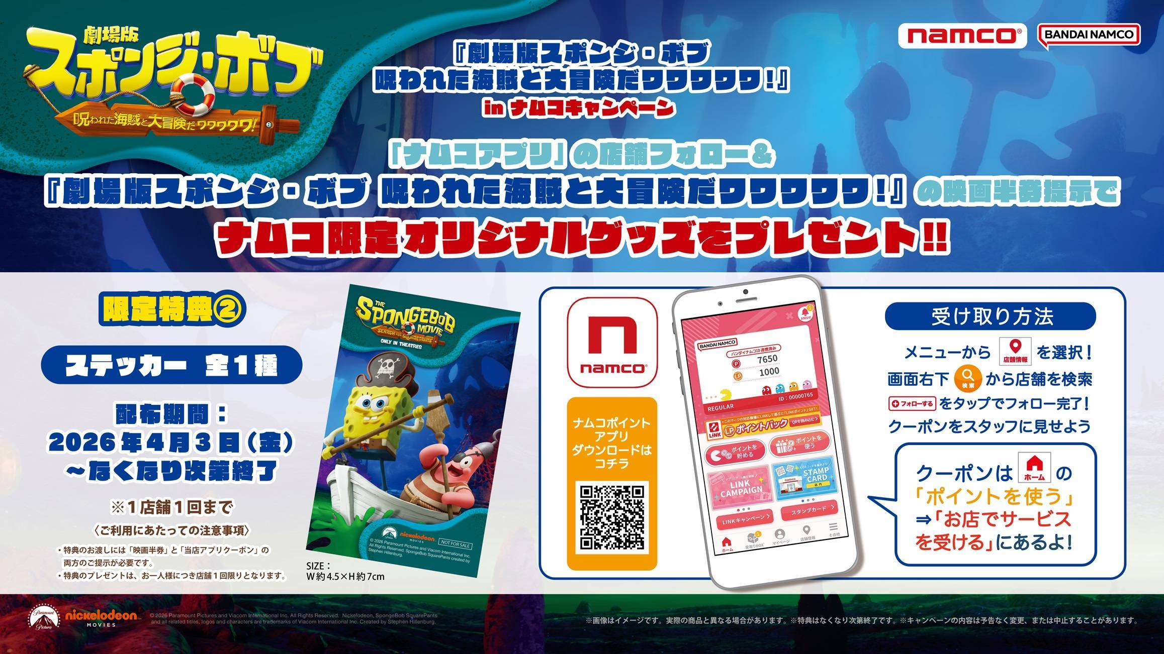 4月3日(金)より、「『劇場版スポンジ・ボブ 呪われた海賊と大冒険だワワワワワ!』 in ナムコキャンペーン」を開催!