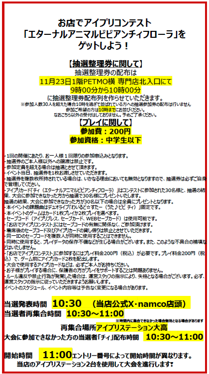定休日:年中無休※当店は法令により、16歳未満のお客様は午後6時以降ご入場いただくことが出来ません。なお、保護者同伴の16歳未満のお客様は閉店時間までご入場いただけます。