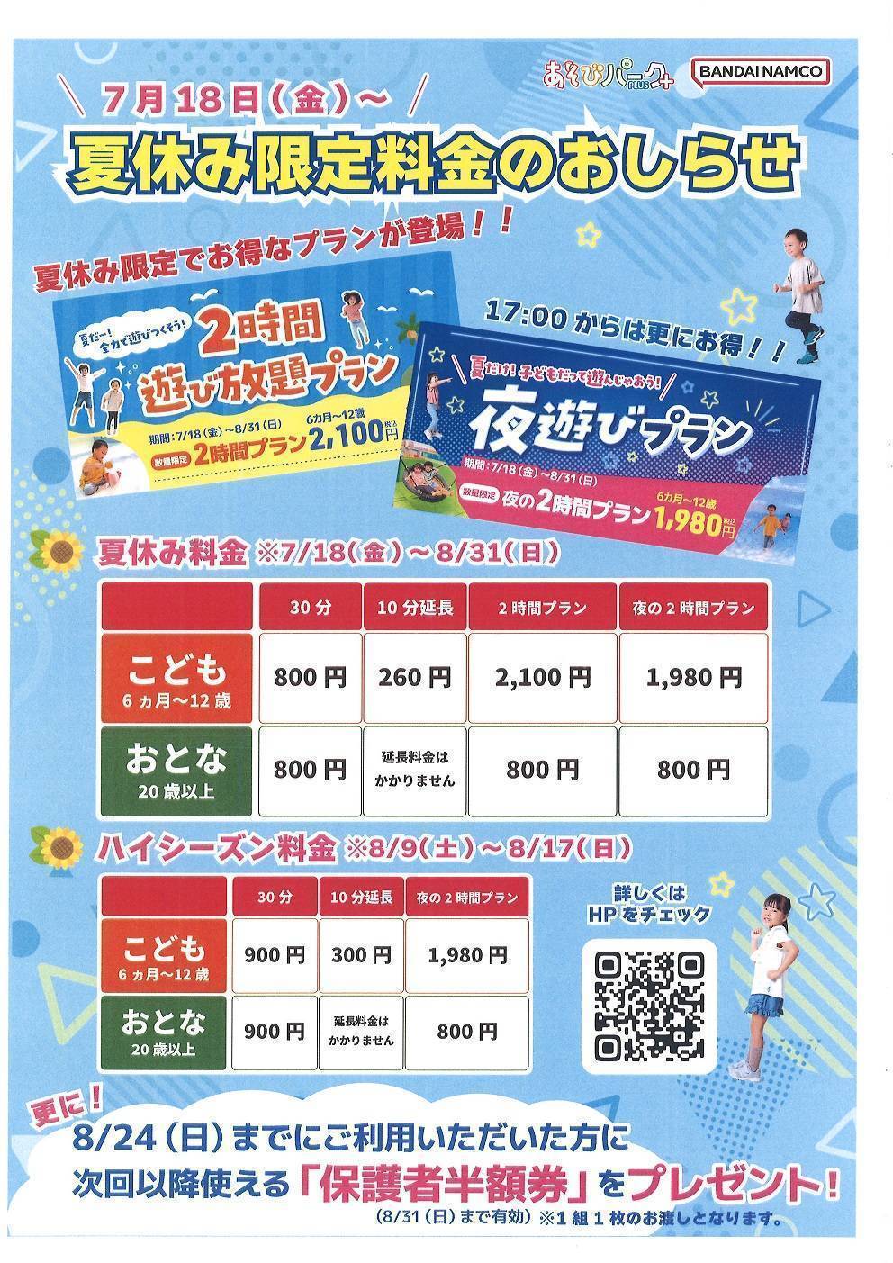 ※あそびパークPLUS 10:00~19:00 (最終受付18:30)