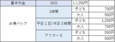 「平日」 と 「土日祝」 の違いについて、 平日の 「平日1日パック(1900円)」 が、 土日祝は 「休日3時間パック(1900円)」 となります。