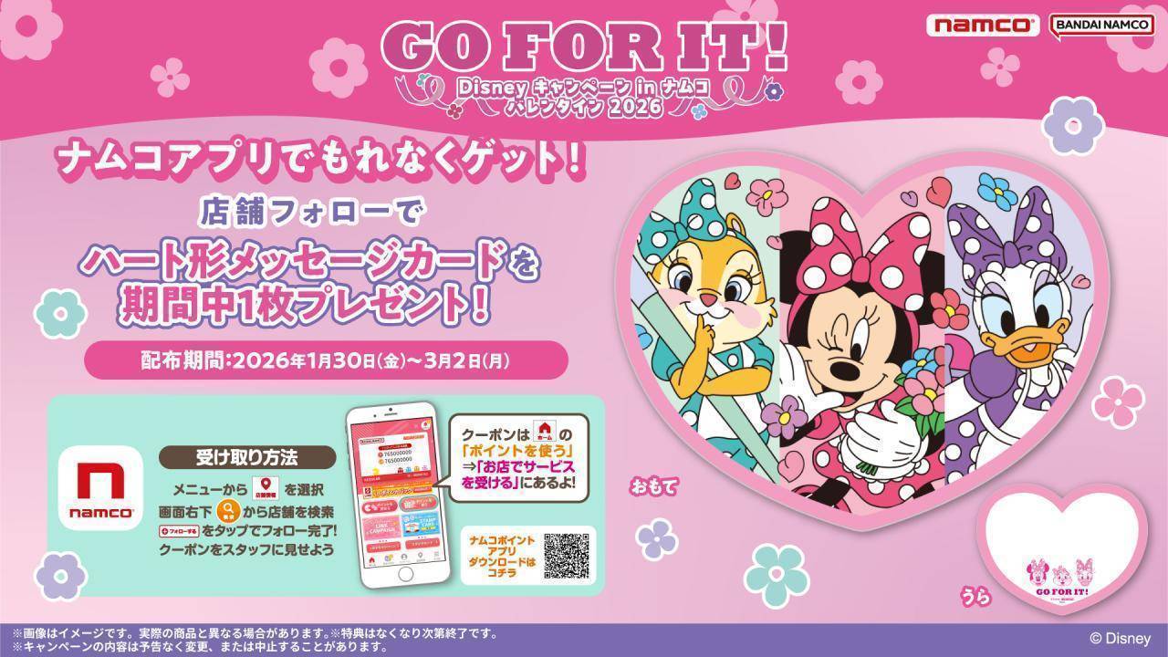 『Disney キャンペーン in ナムコ バレンタイン 2026 ~GO FOR IT!~』を開催!