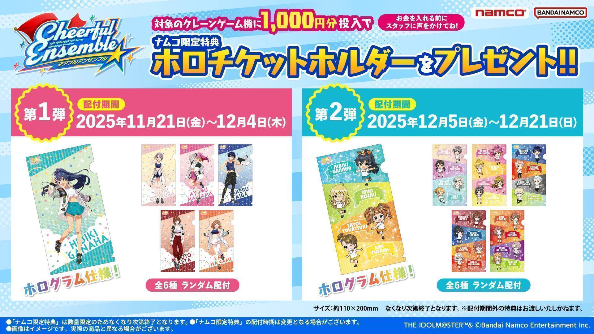 ナムコ限定景品のほか、対象機に500円投入でもらえる特典も登場!