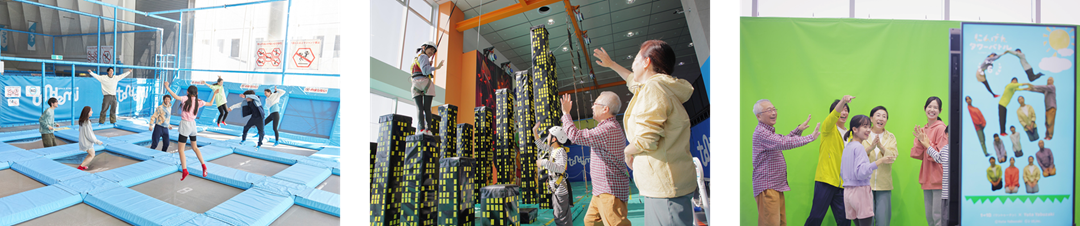 トランポリンで思い切り飛び跳ねたり、誰でも気軽に楽しめるクライミングに挑戦したり、