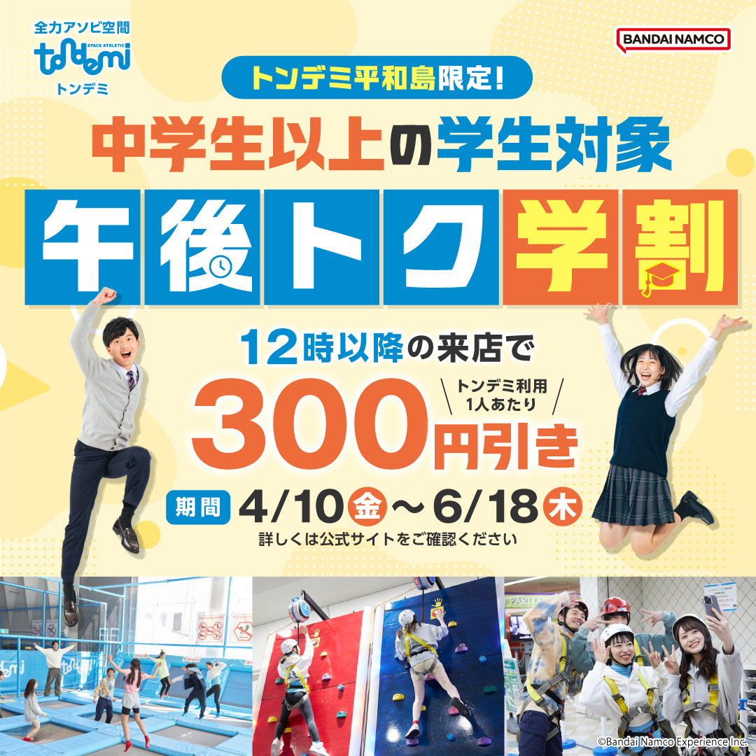 トンデミ平和島では、「午後トク学割」を実施します♪
