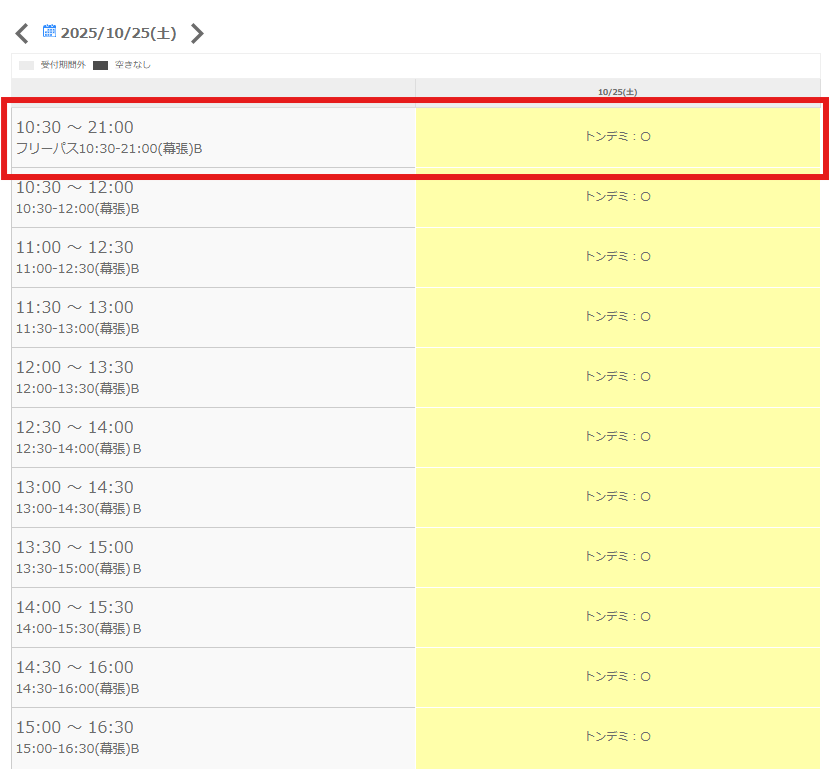 受付で「トンデミフリーパス」利用希望の旨をお伝えください。