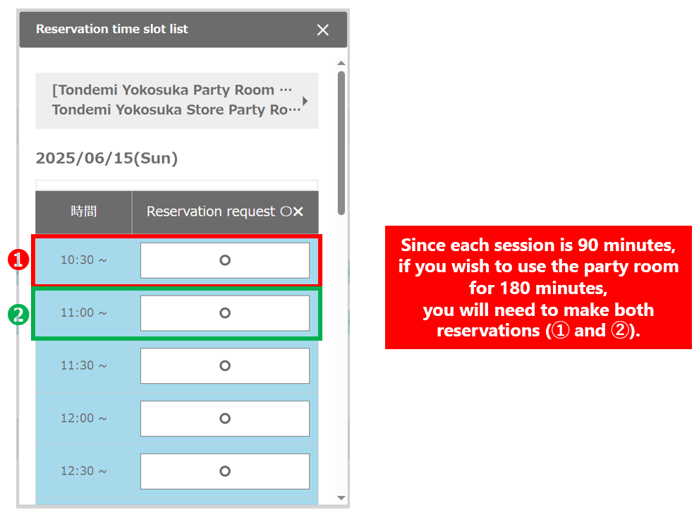 If you wish to use the room for 180 minutes, please make two consecutive reservations.