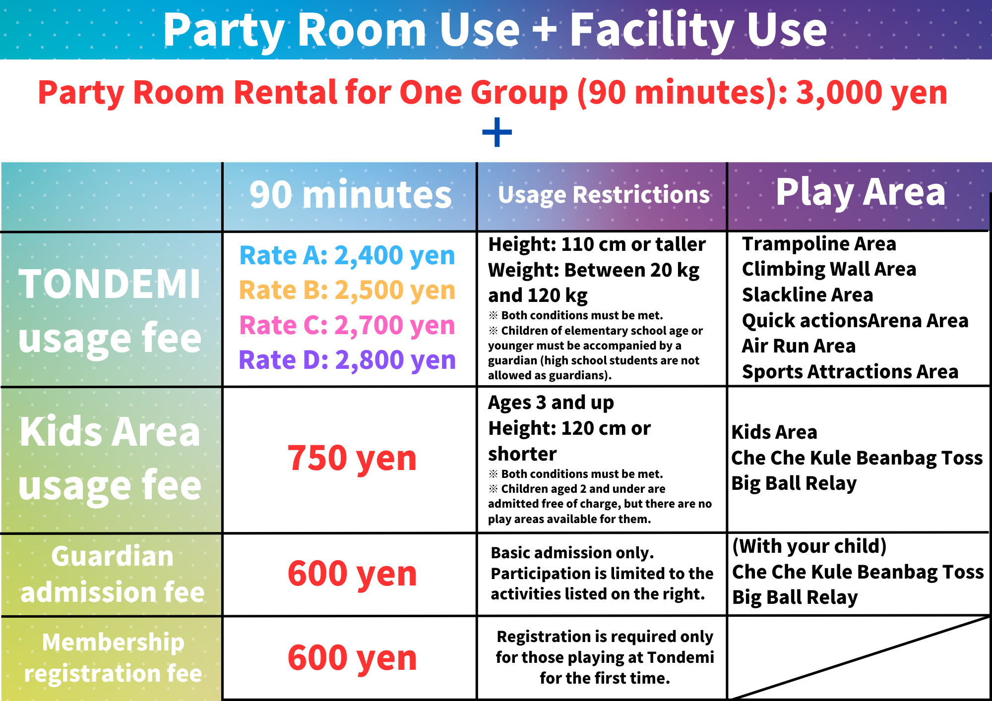 ※ Each reservation allows you to use the party room for one 90-minute session.