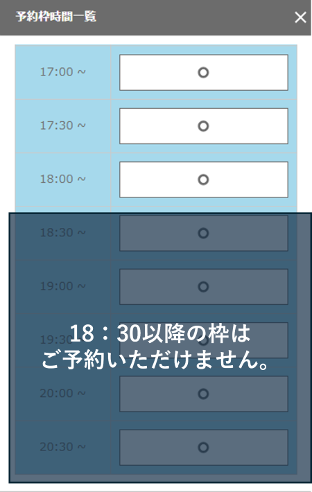 ・他のご予約が入っている日はご予約をお受けできないことがあります。