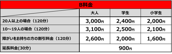 2026年4月6日(月)以降にご利用いただく際の団体料金は下記のとおりです。
