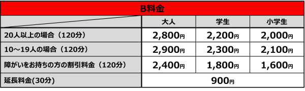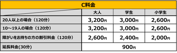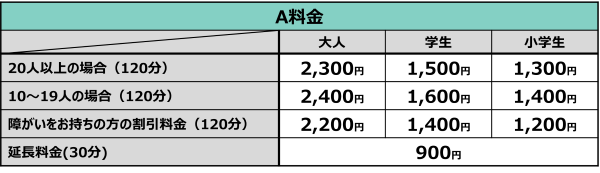 2026年4月6日(月)以降にご利用いただく際の団体料金は下記のとおりです。