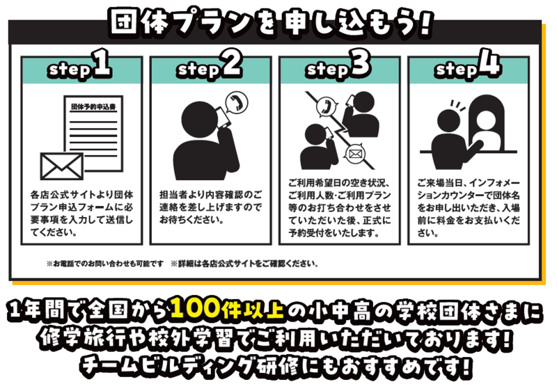 2026年4月6日(月)以降に団体利用をされる方は通常団体料金になります。