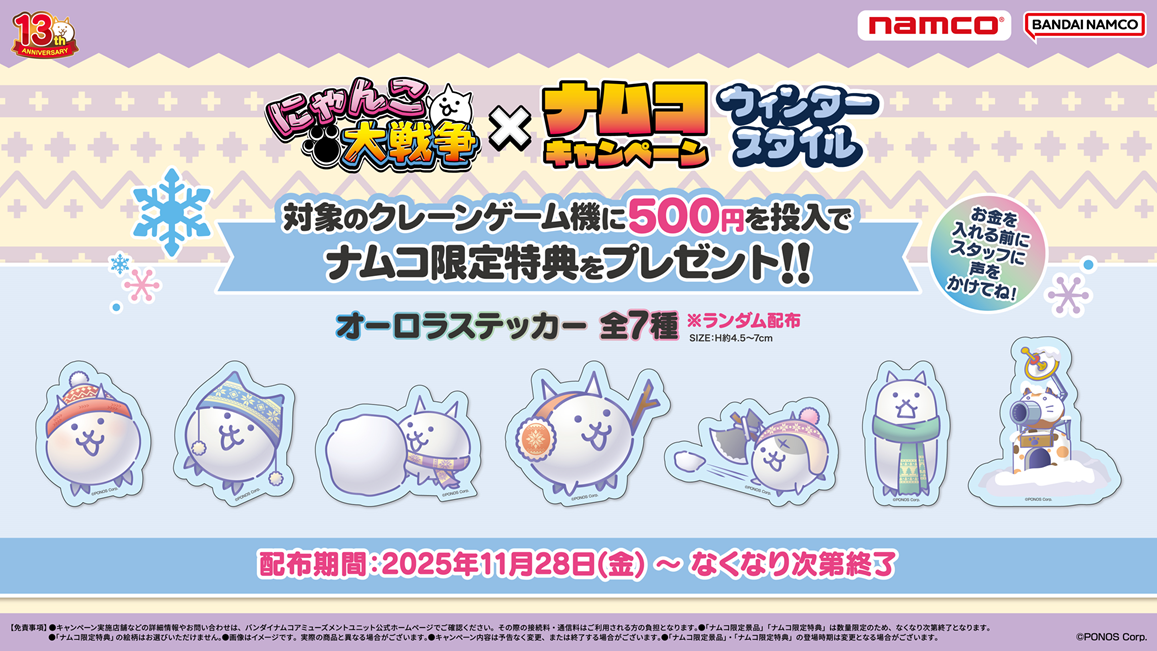 11月28日(金)より、『にゃんこ大戦争×ナムコキャンペーン ウィンタースタイル』を開催!