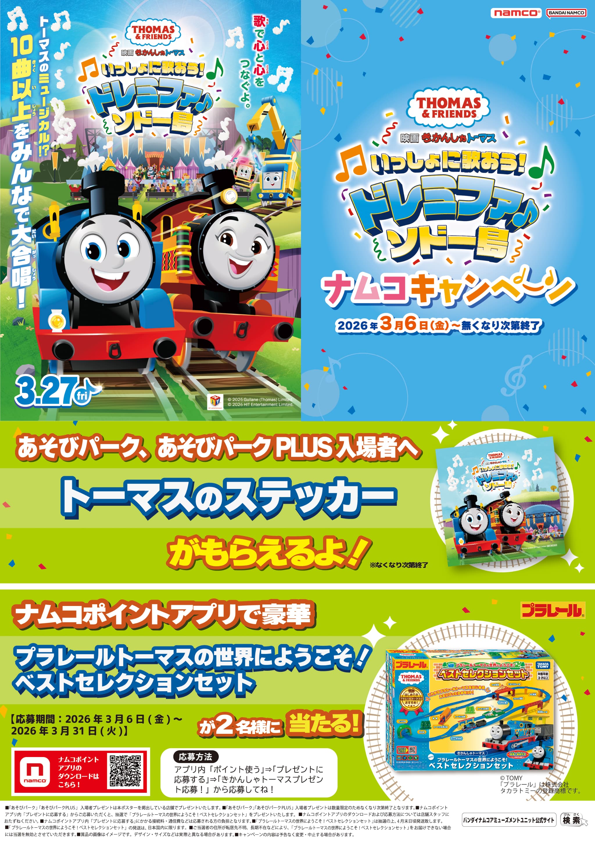 公開記念として、3月6日(金)~トーマス×ナムコキャンペーンを実施いたします。