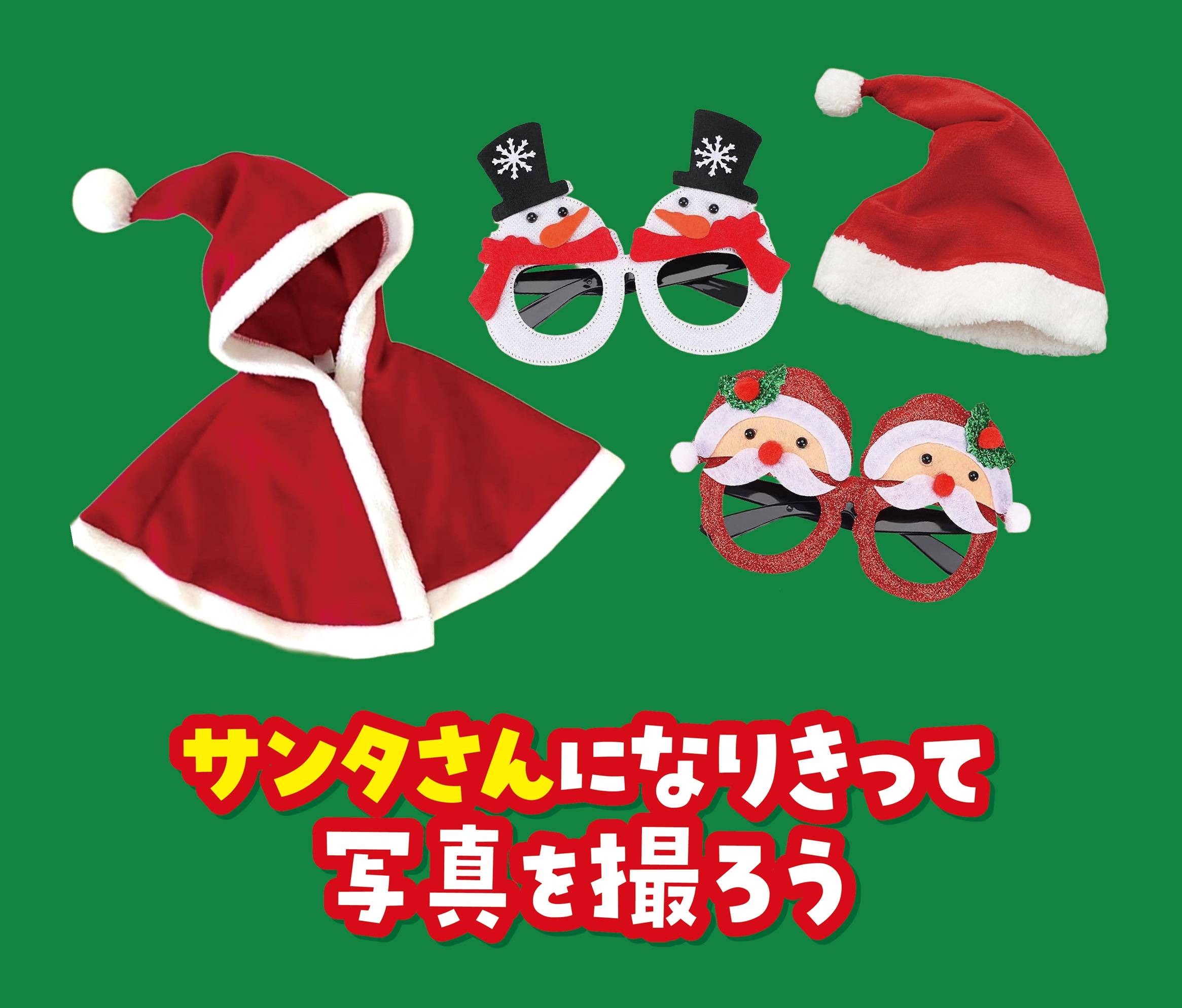 かわいいサンタコスチュームに変身したお子さまの写真を撮影出来ます。SNSへの投稿にもぴったりです。特別な笑顔を、ぜひ残してください。