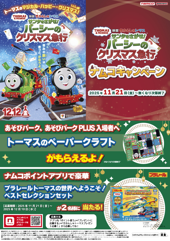公開記念として、11月21日(金)~トーマス×ナムコキャンペーンを実施いたします。
