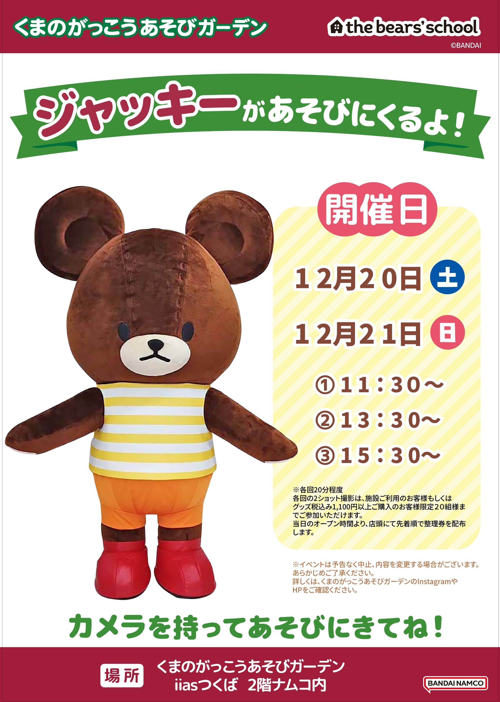 12/20(土)・12/21(日)ジャッキーが「くまのがっこうあそびガーデン iiasつくば」にあそびにきます!