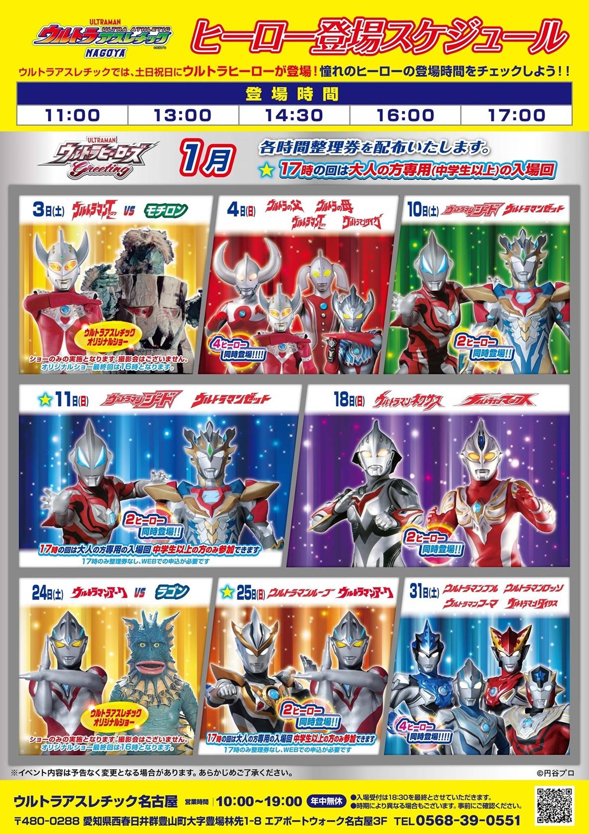 【1月】ヒーロー登場スケジュールと参加申し込み方法 -名古屋店-