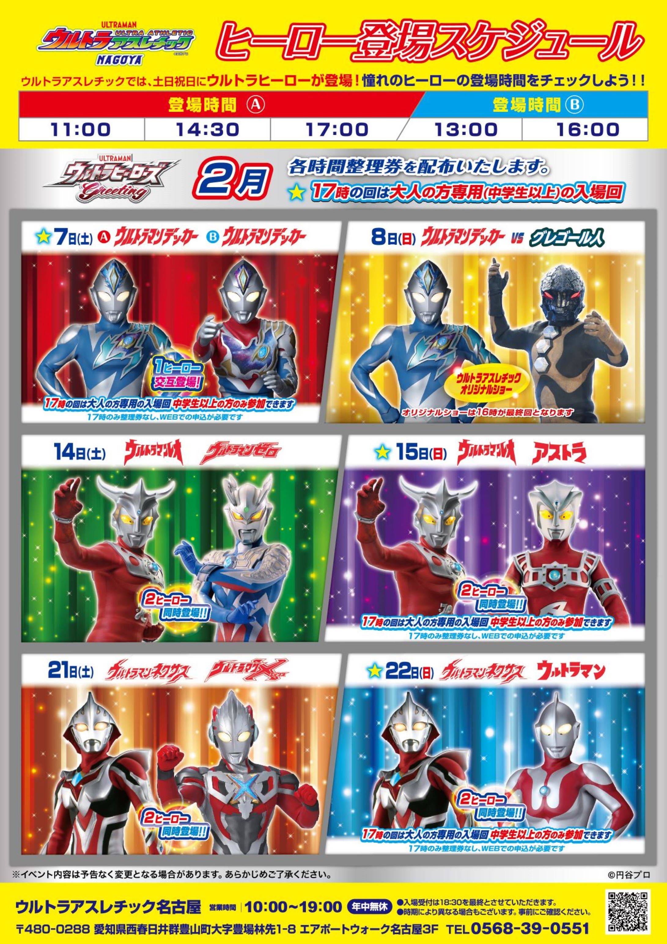 【2月】ヒーロー登場スケジュールと参加申し込み方法 -名古屋店-