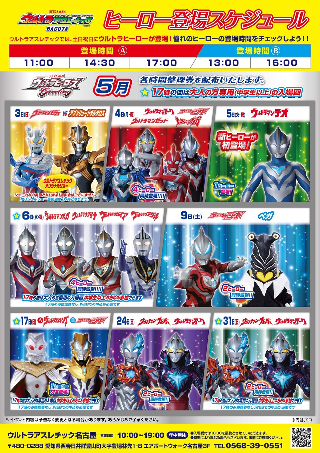 【5月】ヒーロー登場スケジュールと参加申し込み方法 -名古屋店-