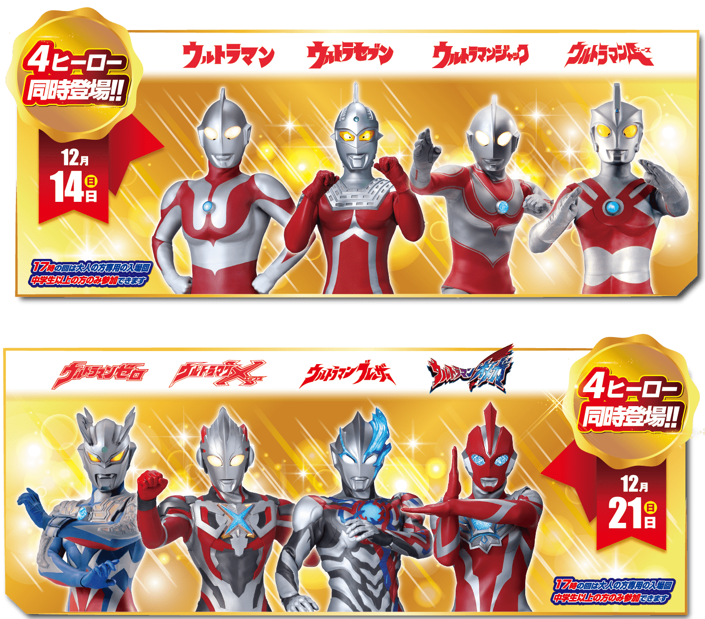 「ウルトラマンゼロ」「ウルトラマンエックス」「ウルトラマンブレーザー」「ウルトラマンオメガ」