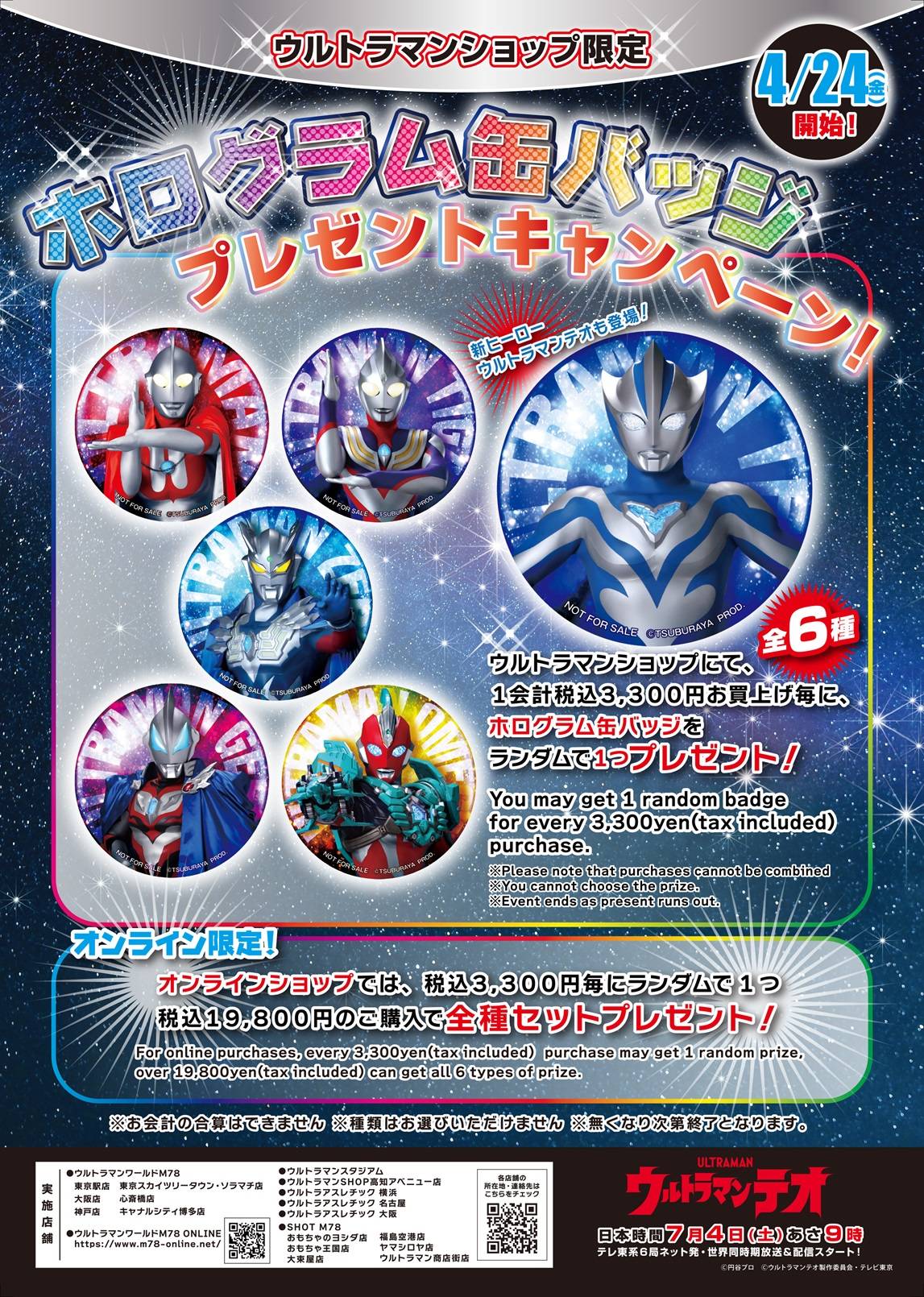 期間中、ウルトラショップにて1会計税込3,300円以上お買い上げのお客様に、