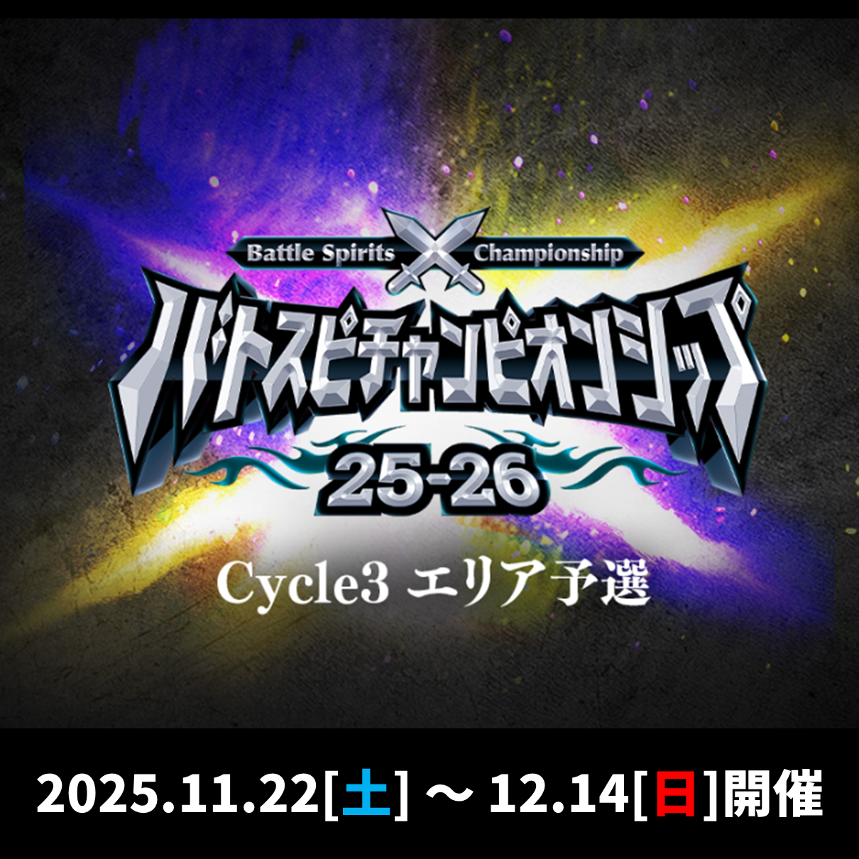 バトスピチャンピオンシップ25-26 Cycle3 エリア予選 | https://www.bandai-tcg-plus.com/series/5035 | 11/22 12:45~ |