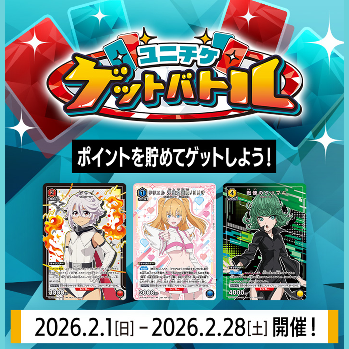 ユニチケゲットバトル(2月開催) | https://www.bandai-tcg-plus.com/series/5938 | 2/6 18:00~ 2/13 18:00~ 2/20 18:00~ 2/27 18:00~ |