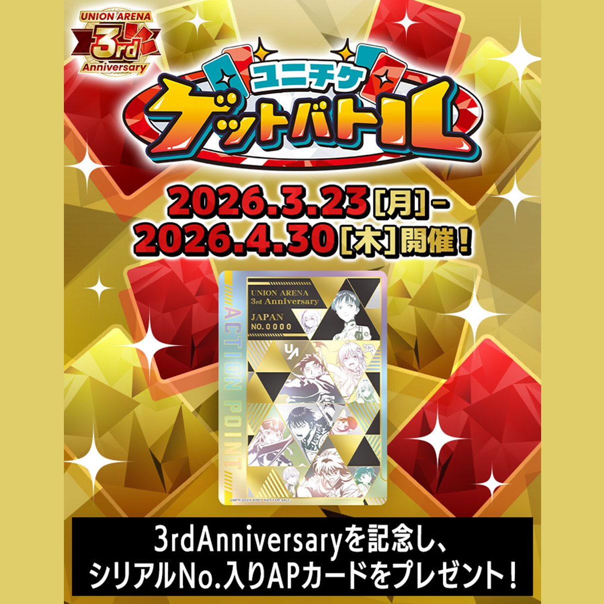3周年ユニチケゲットバトル | https://www.bandai-tcg-plus.com/series/6619 | 4/17 18:00~ 4/24 18:00~ |