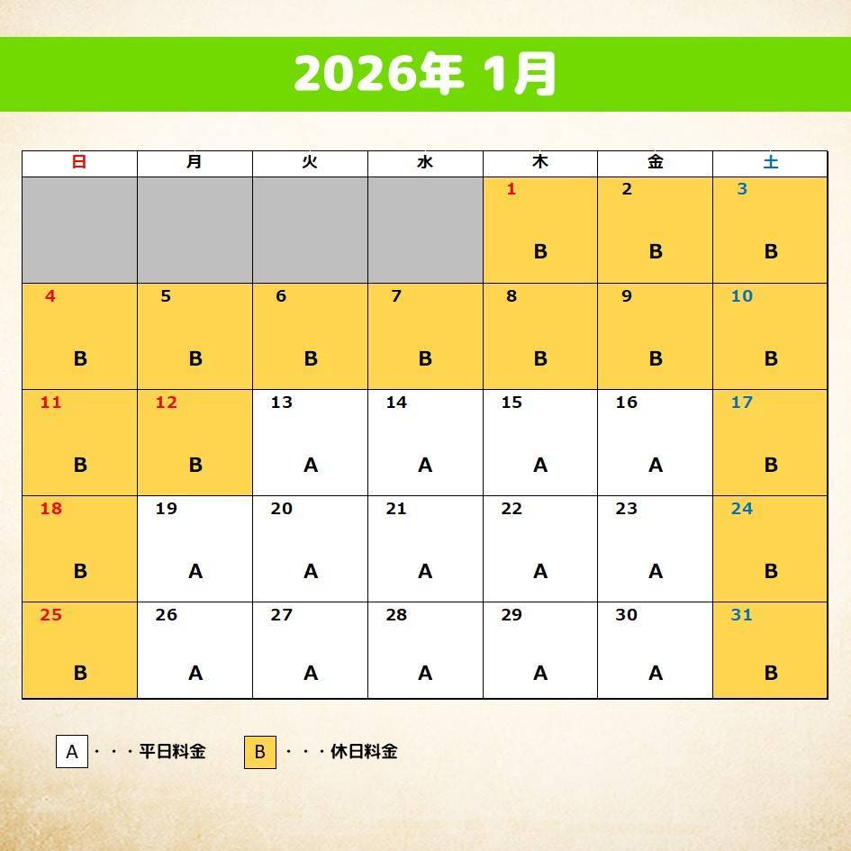 平日でも「土日祝日・ハイシーズン料金」に該当する日がございます。