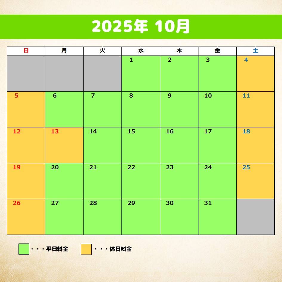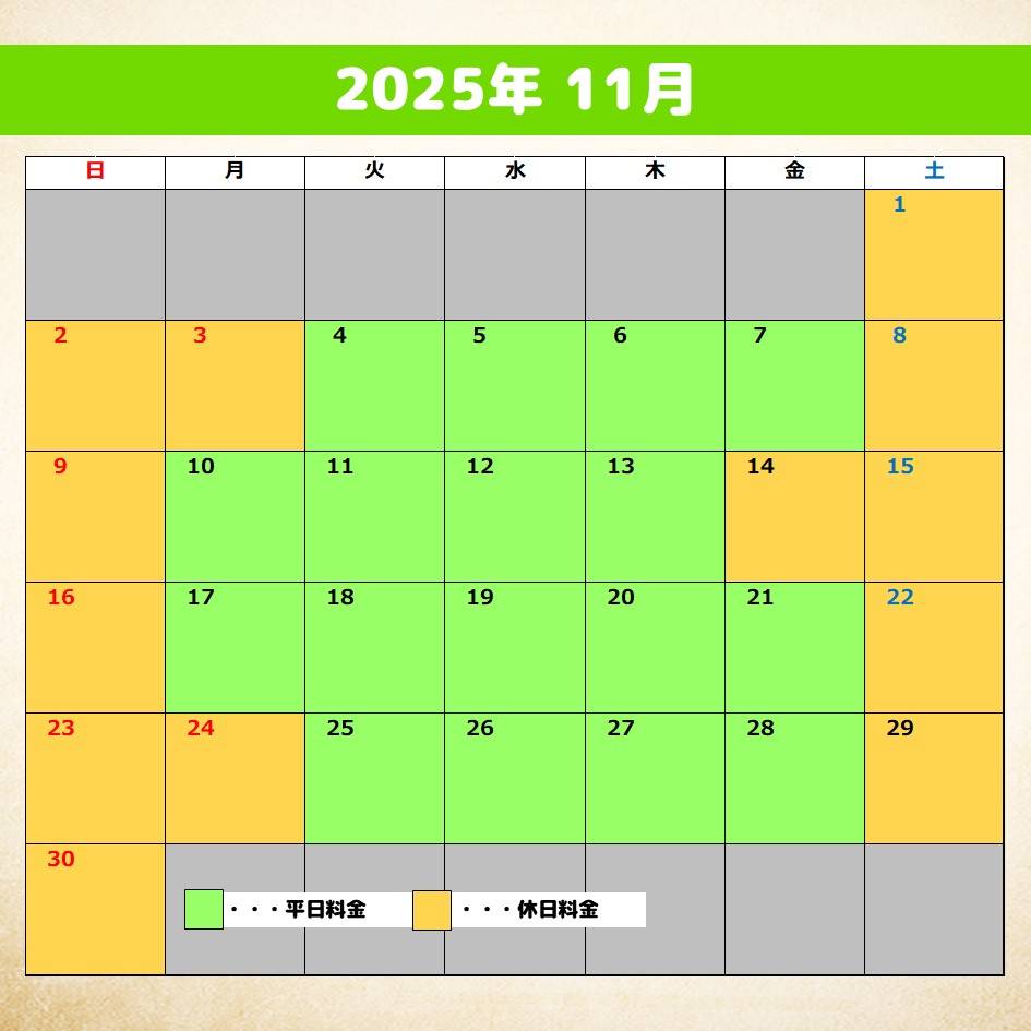 【料金カレンダー】2025年10月、11月分