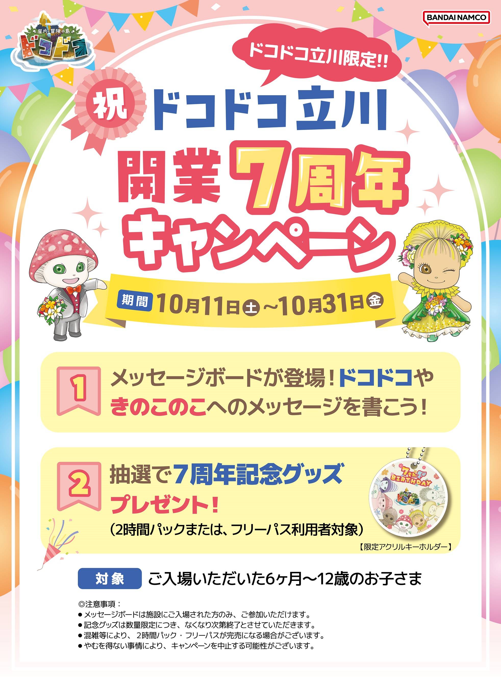 日ごろの感謝をこめて、『祝!ドコドコ立川開業7周年キャンペーン』を10月11日(土)~10月31日(金)に開催します!