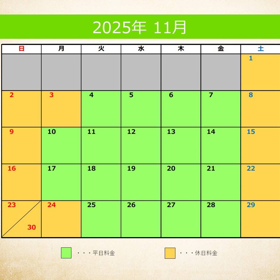 【料金カレンダー】2025年10月、11月分