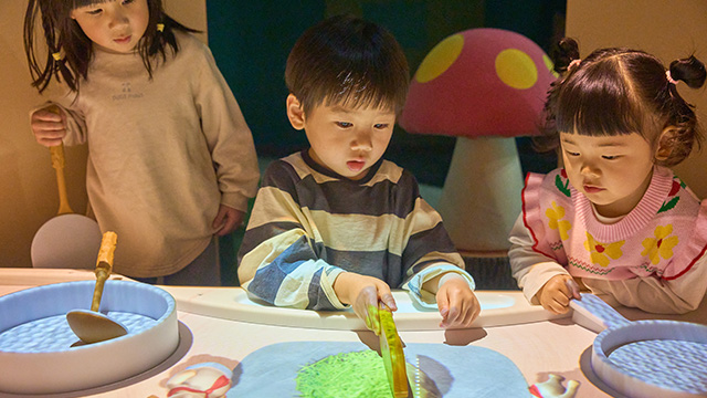 料理長を手伝って、はらぺこの“きのこのこ”たちにお料理をつくってあげよう。切って焼いて混ぜて盛り付けて、やりたい放題!