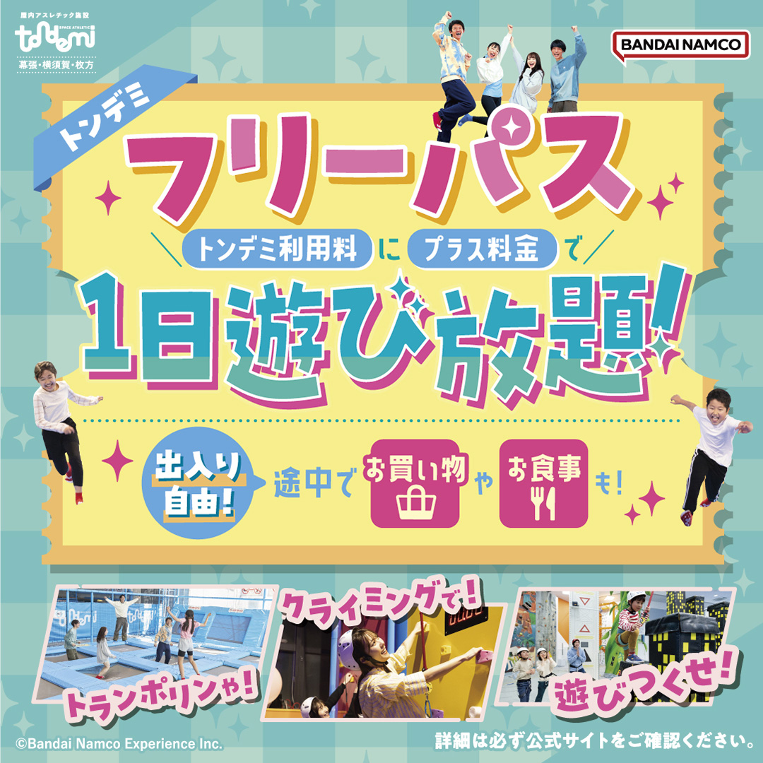 トンデミ幕張・横須賀・枚方限定♪出入り自由の1日遊び放題「フリーパス」販売!!