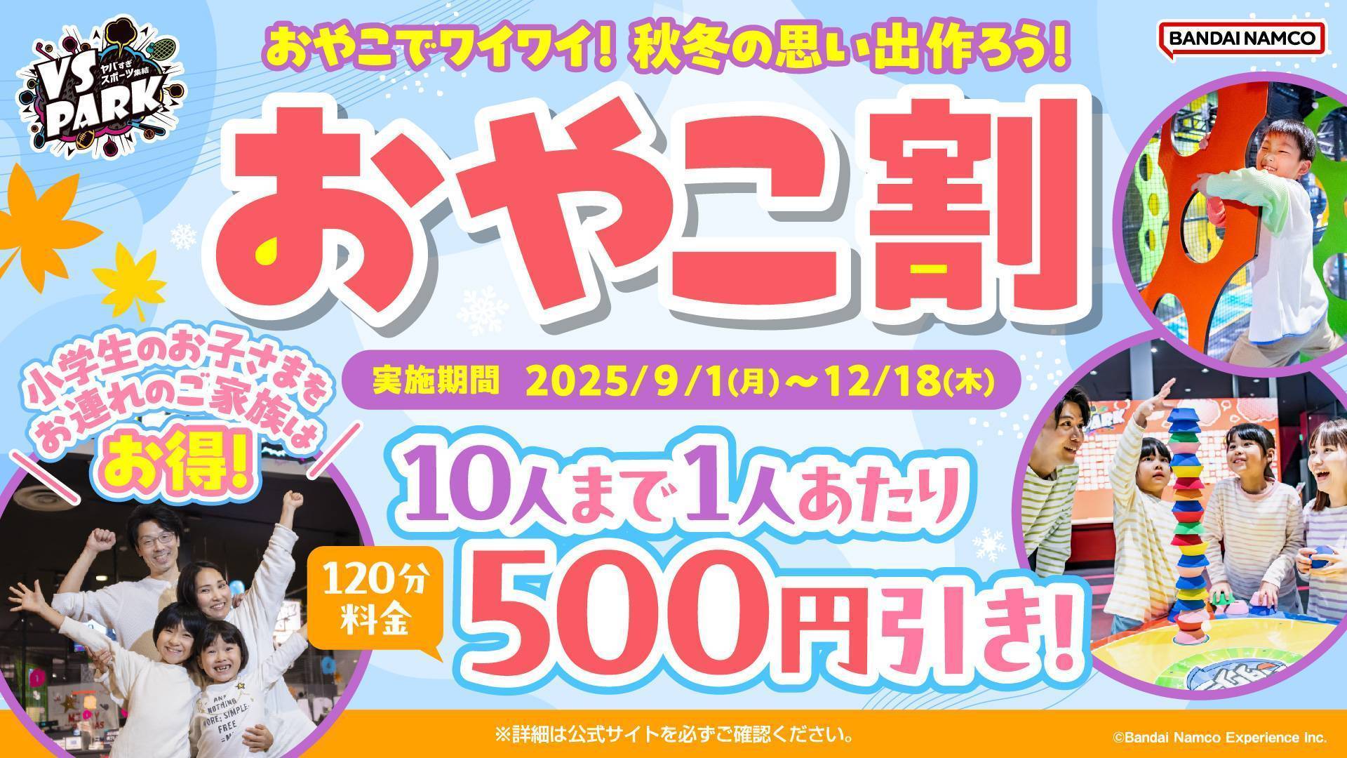小学生のお子さまと大人が一緒に来場すると120分料金が1人あたり500円引きになる「おやこ割」キャンペーンを開催します!