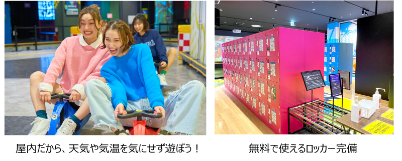 VS PARKは屋内施設なので、雨も気温も気にせず、友達や恋人と思いっきり楽しめます♪