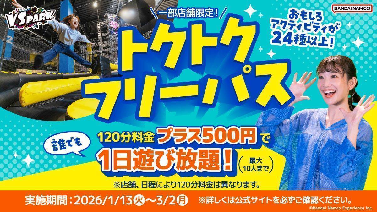 店舗トピックス 【店舗限定】120分料金に500円を追加すれば1日遊び放題に!「トクトクフリーパス」