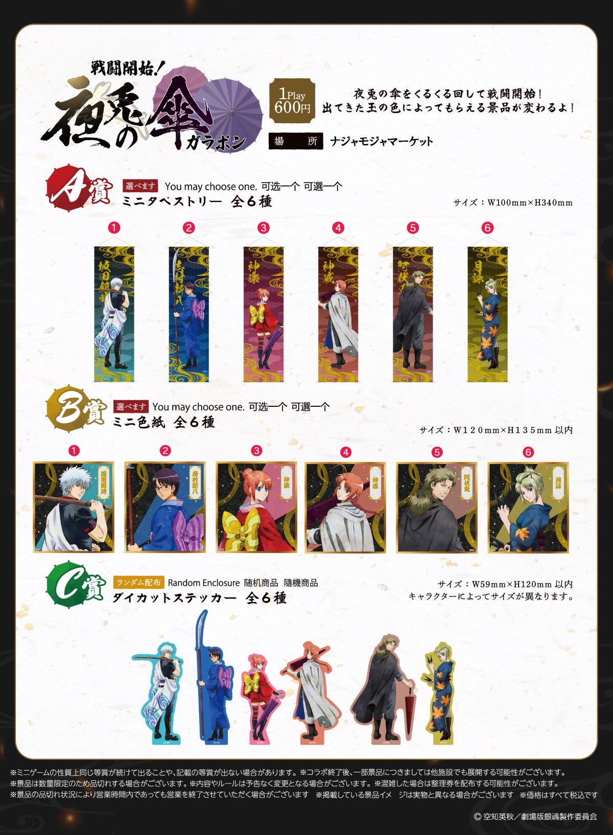 ※物販ノベルティのクリアシートは『銀魂』ナンジャタウンコラボ関連商品ご購入でのお渡しとなります。